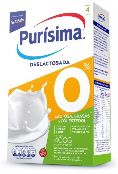 LECHE EN POLVO PURISIMA DESLACTOSADA X 400G