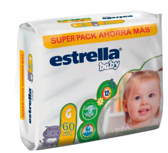 PAÑALES INFANTILES ESTRELLA SUPERPACK GR X 60