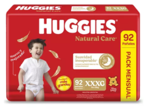PAÑALES INFANTILES HUGGIES SUPREME CARE PACK MENSUAL XXXG X 92U.