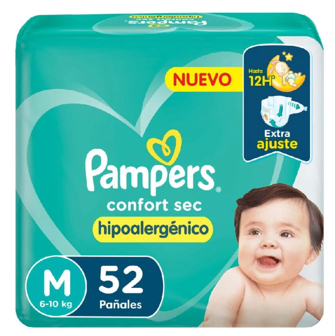PAÑALES INFANTILES PAMPERS BABY DRY HIPOAL MEDIANO X52U.