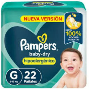 PAÑALES INFANTILES PAMPERS BABY DRY GRANDE X 22U.