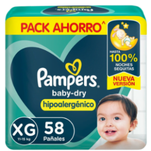 PAÑALES INFANTILES PAMPERS BABY DRY HIPOAL GR X44U.